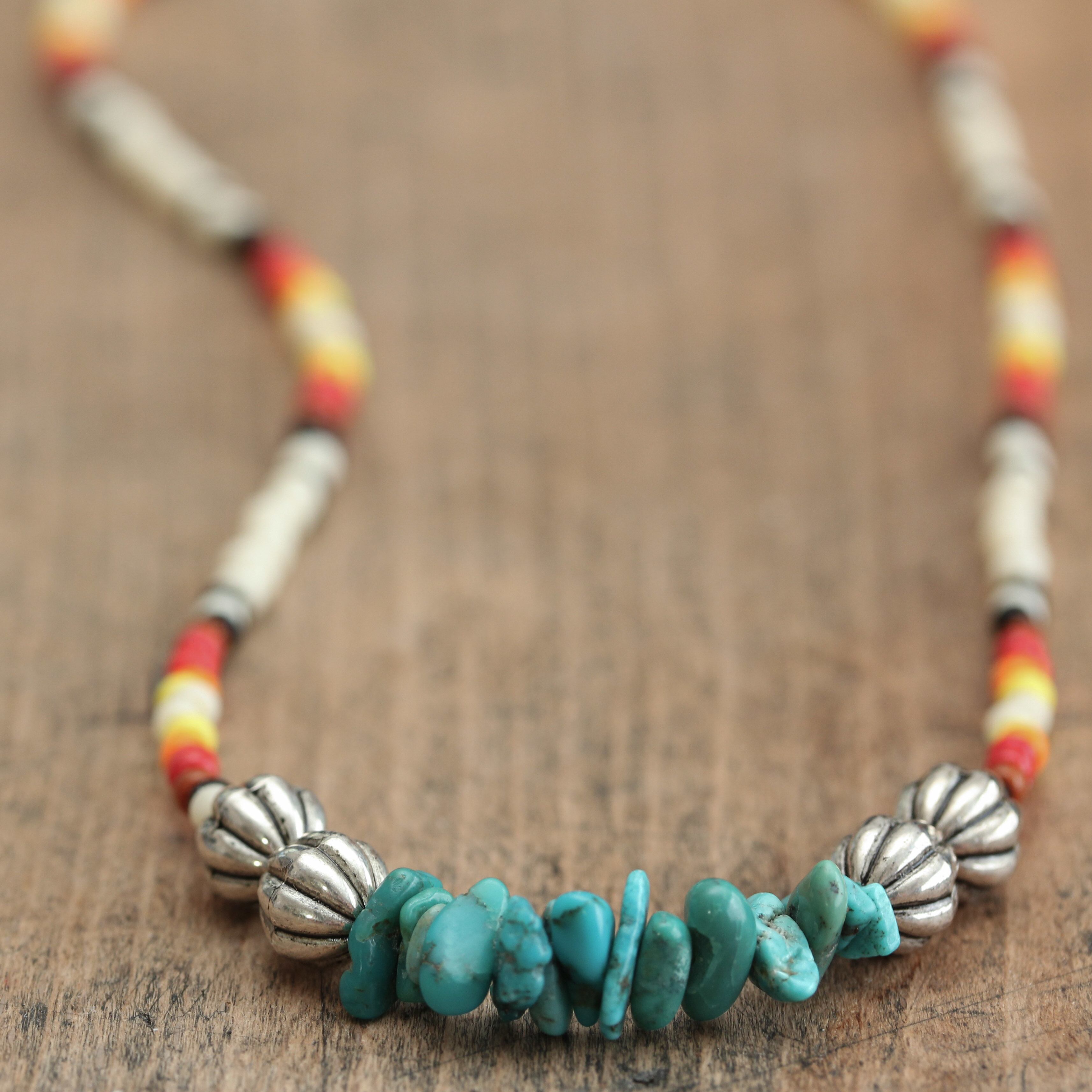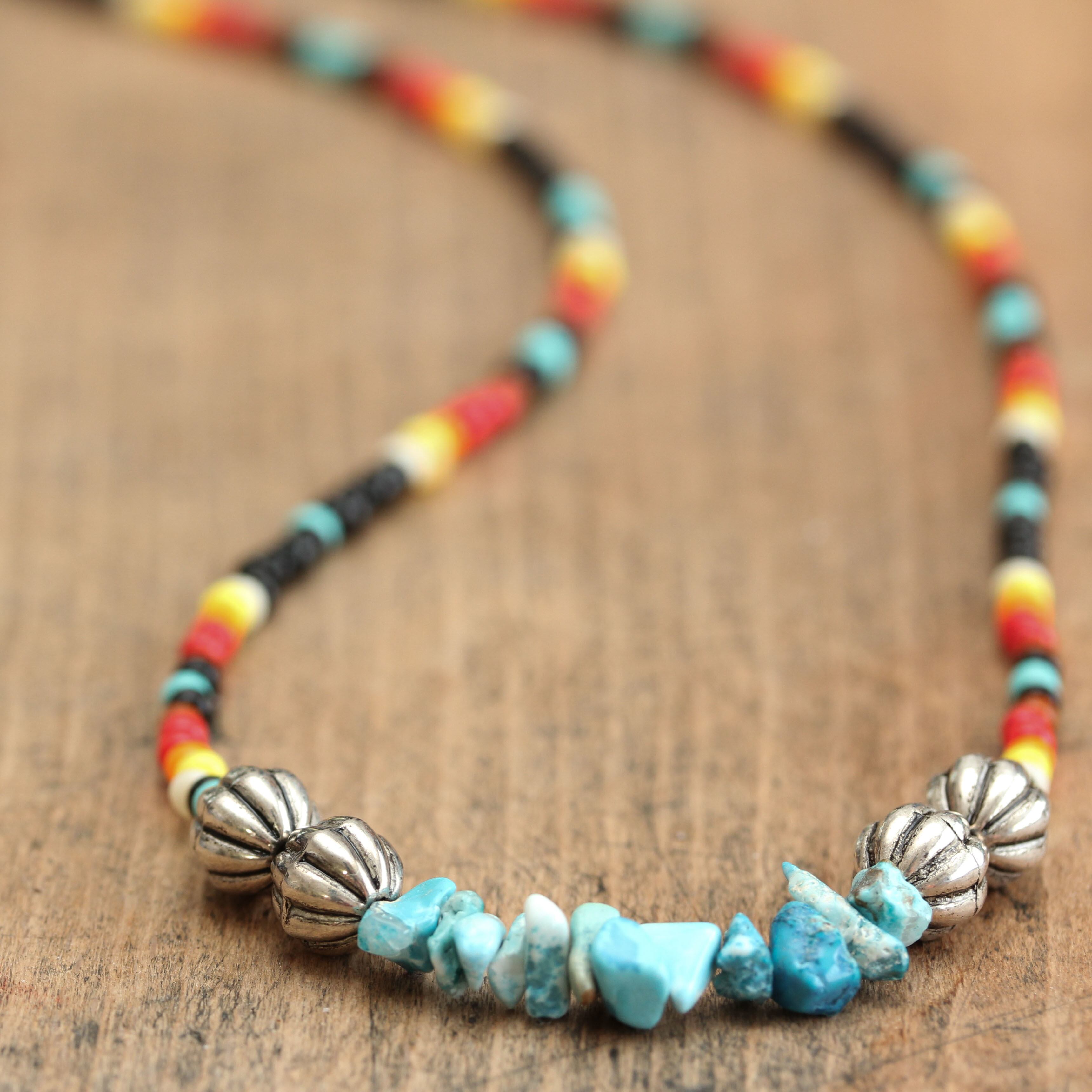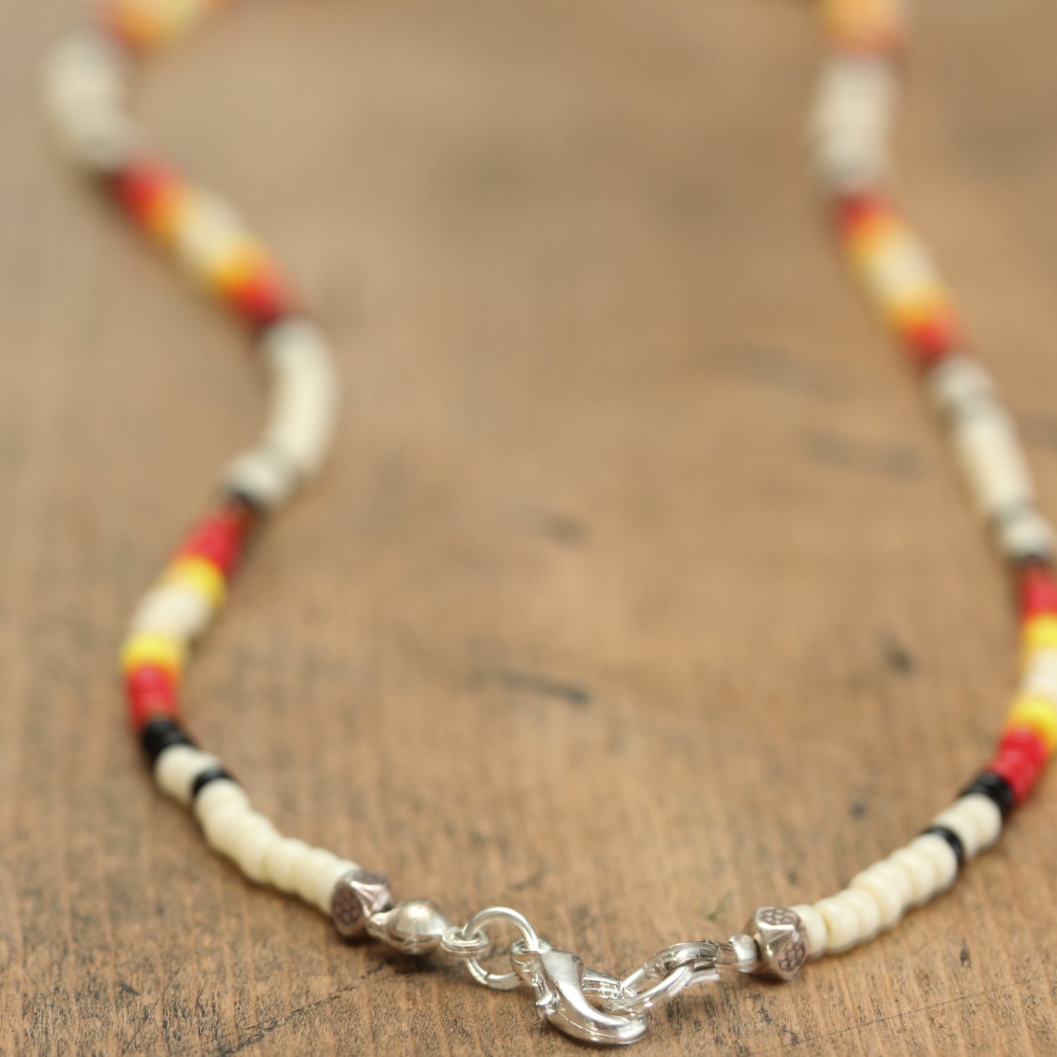 ♪ご覧頂き有難うございます♪ 3mmグラスビーズをネイティブ調に アレンジしセンターにサザレストーンをあしらった ネックレスです。 少しゆるい装着感となりますが、アンクレットとしても お使いいただけます。 サイズ:48㎝ ※3%前後の+-誤差はご了承くださいませ。 クオリティ:グラスビーズ・シェル・タイガーアイ・ ラピスラズリ・ブラスビーズ