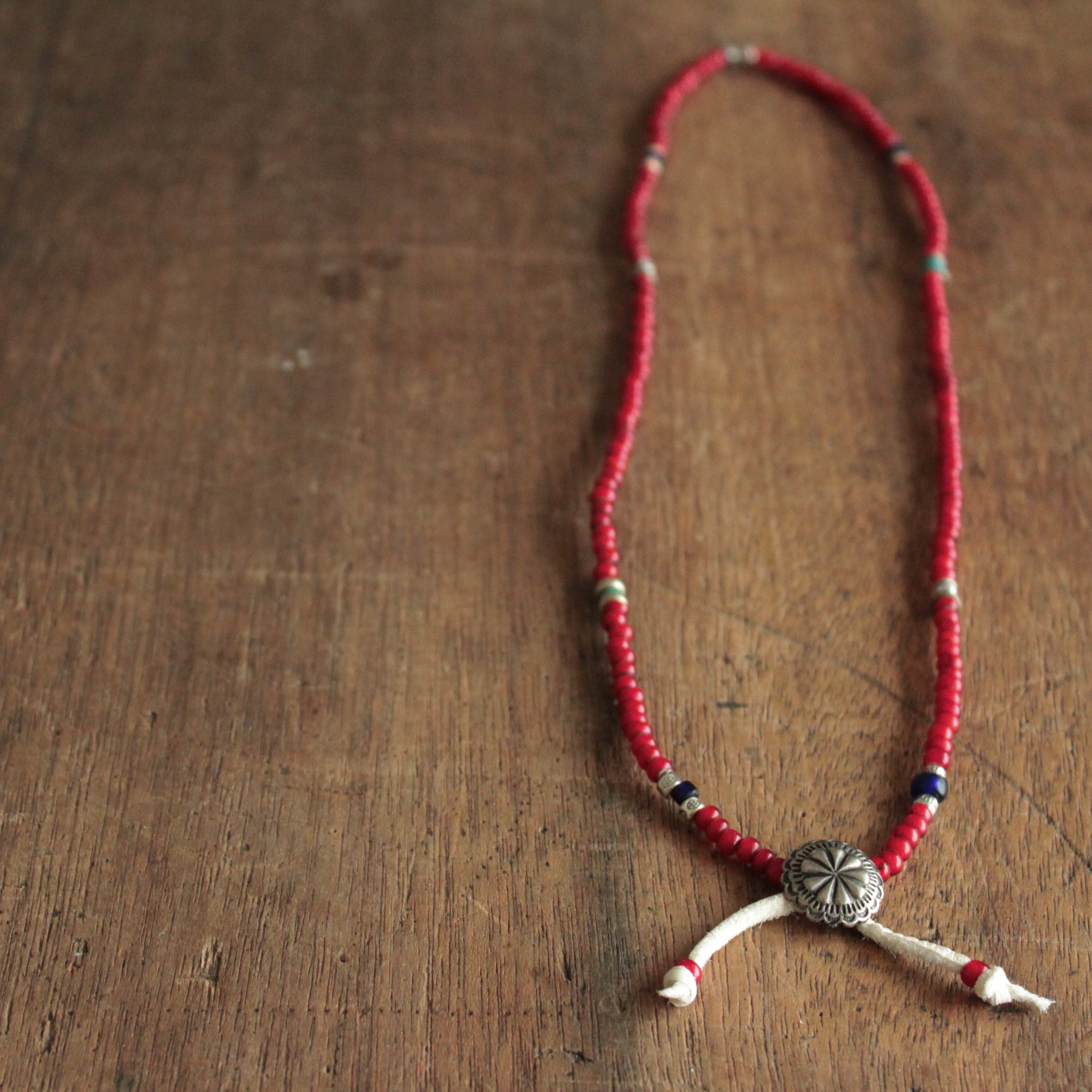 ナダ族ガラスビーズ・ターコイズ・ブラスビーズを